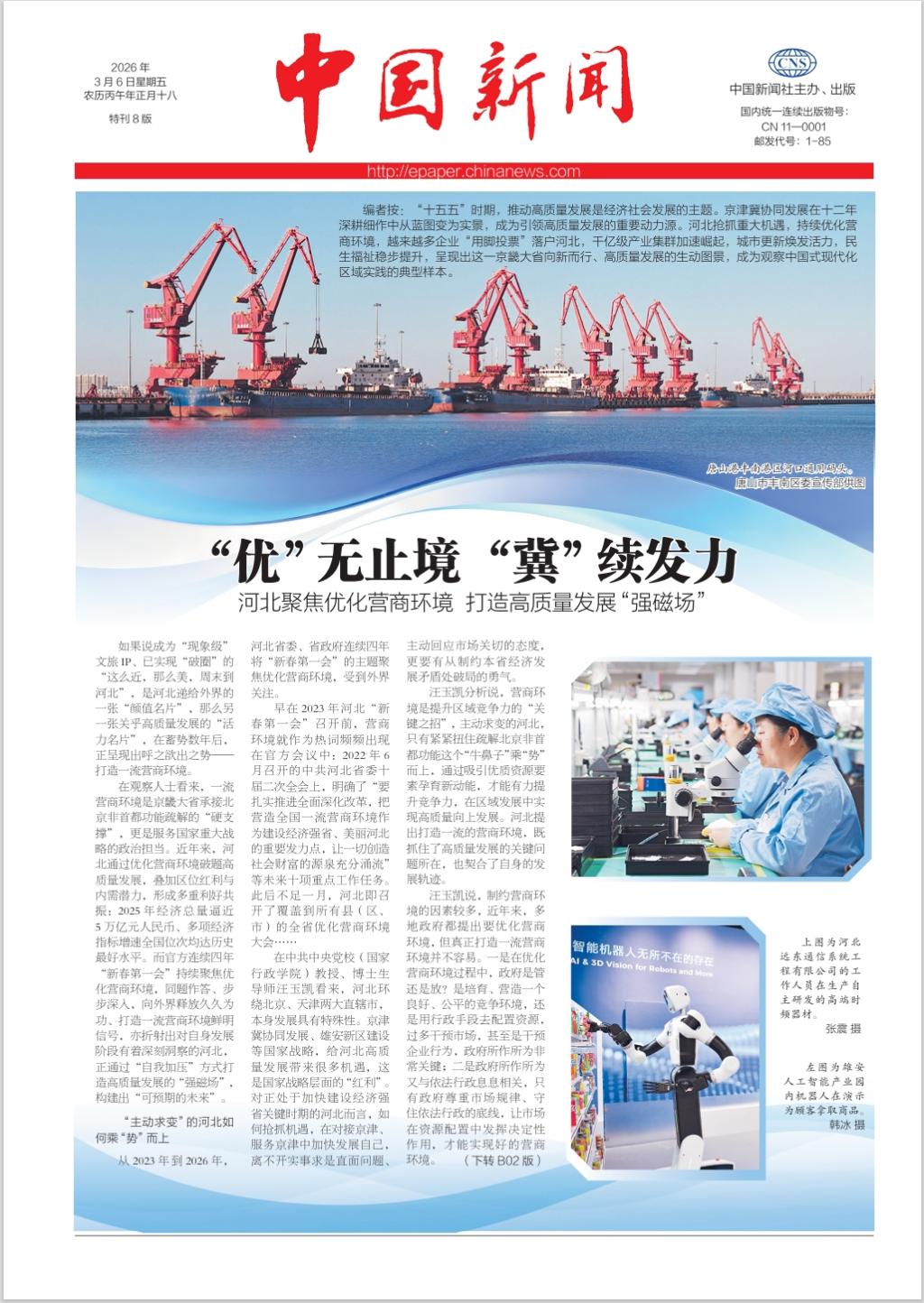 “无论是央企,还是民营企业,对于营商环境的反应都非常灵敏,营商环境的好坏,直接关系到企业的生存环境、经营发展。”汪玉凯以2024年河北常住人口由长期净流出转变为净流入2万人,2025年河北民间投资同比增长8.6%、高于全国平均水平15个百分点举例说,这些都是很重要的信号,从过去的“虹吸效应”到现在的“辐射带动”,由长期净流出的“外流洼地”转变为净流入的“聚才高地”,民间投资不断增长,说明河北持续优化营商环境见到了实实在在的效果,也从侧面折射出河北当下的市场活力。